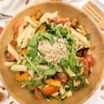 *For a lighter, salad-style version, simply skip the pasta. The roasted squash and arugula combo is still delicious.**If you don’t have vegan parmesan on hand, nutritional yeast makes a great quick substitute..